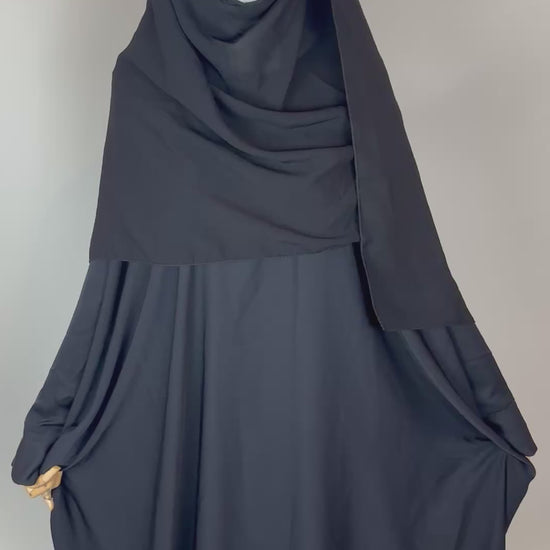 This Abaya set is essential for every Muslimah's wardrobe , in this set you will receive our abaya with a matching black chiffon hijab to complete your look . This Abaya is spacious and offers a generous fit for all .