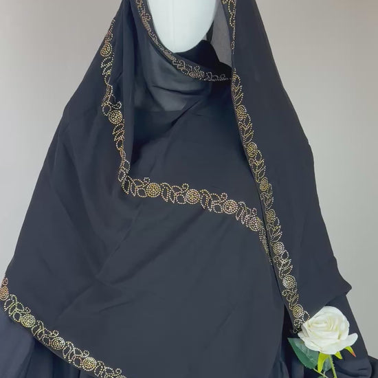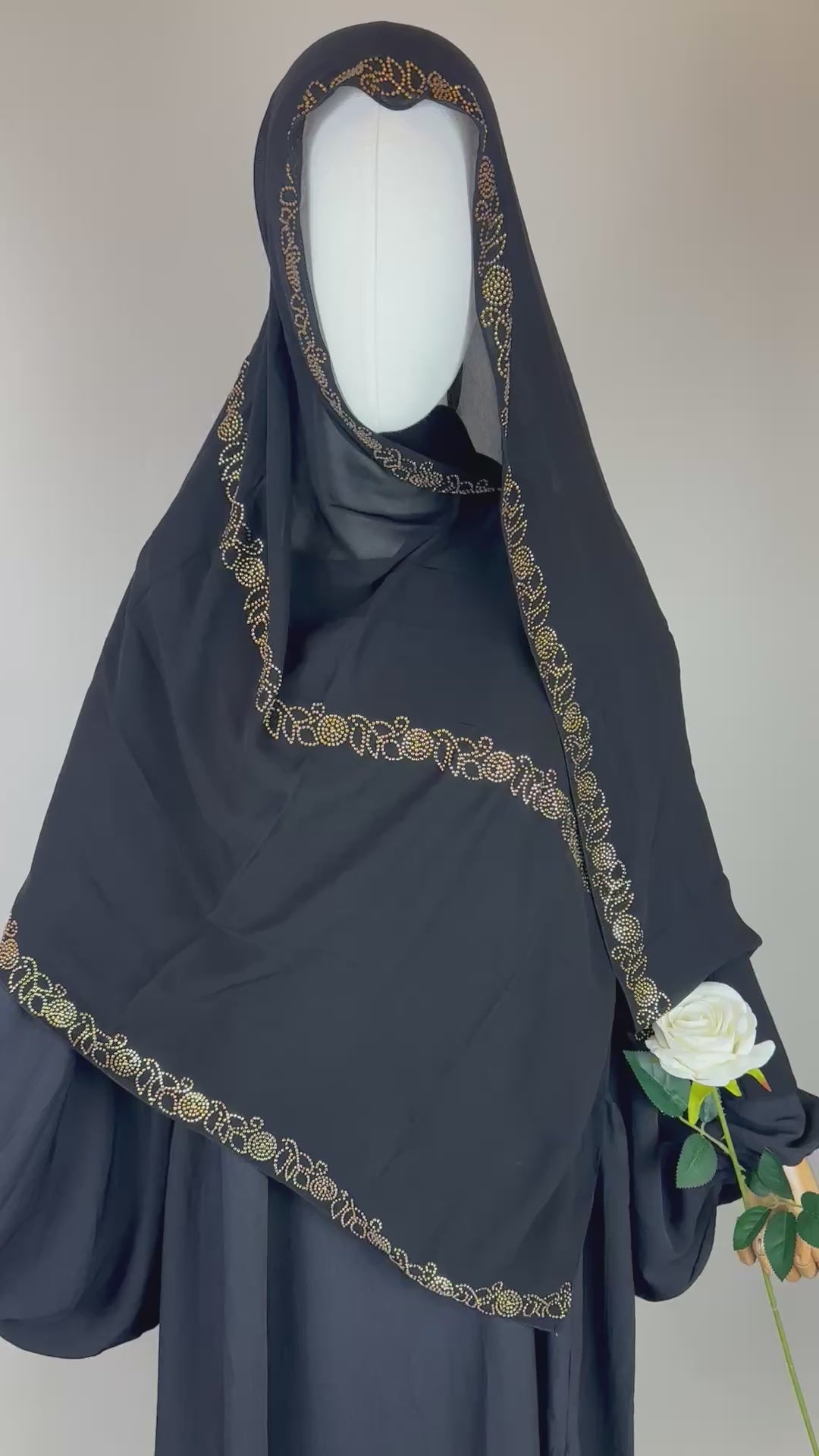 This Saudi chiffon Hijab is truly a luxury item at an affordable price , its standard size is perfect for daily wear and its detailing with elevate your look so you can also wear it for all your upcoming occasions .